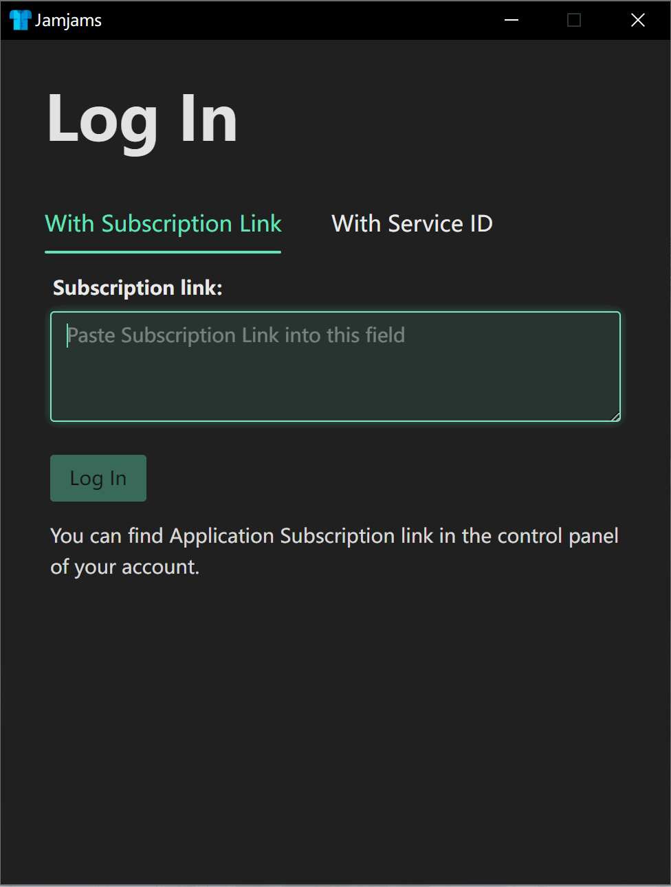 方法一: 如果一上面"with subscription Link"作为登录方式的话,请登录justmysocks后台找到"subscription"然后将"Application subscription"里面的链接复制到