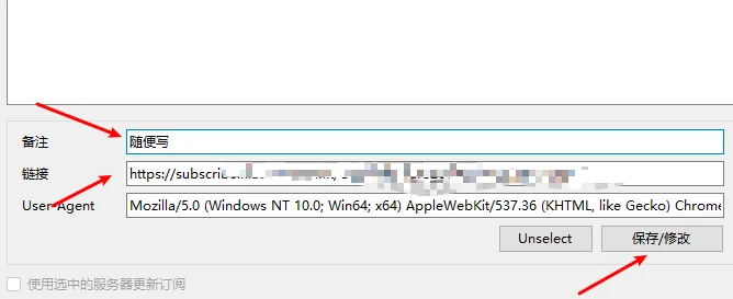 二、把ssr等订阅链接粘贴到链接处,点击保存即可。
