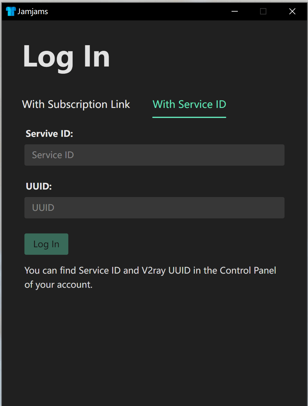 方法二:登录just my socks后台,如果我们是以"with Service ID"模式登录的话.需要如下信息.